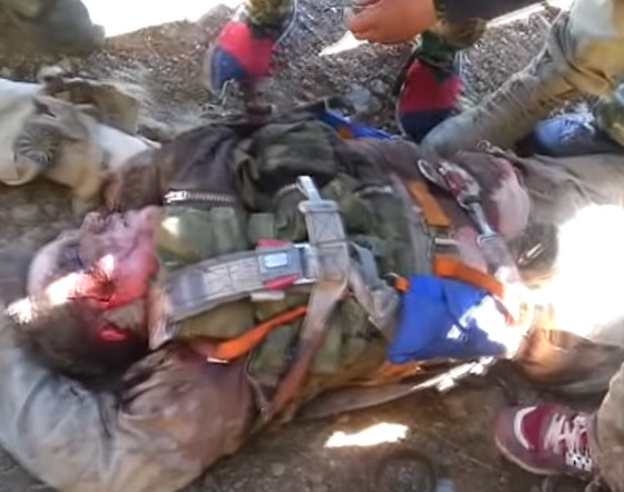 Сирийската свободна армия пусна в интернет видео, в което твърди, че заснетия труп е на руския пилот от сваления от Турция „СУ-24“