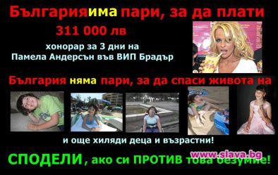 В борбата срещу появяването на Пам за баснословна сума се включи дори светският хроникьор Лорд Евгени Минчев. Във Фейсбук е пуснат колаж. Под фотото на Памела са наредени снимките на болни деца, за чието лечение са нужни много по-малко пари, отколкото ще получи тя, за да върти дупе пред екрана. Българите смятат, че е цинизъм да се дават такива хонорари, за да се вдигне рейтинггът на едно предаване, когато хората умират от глад и нямат пари и за хляб.