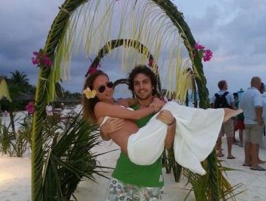 Тя използвала туристическата атракция – арка от рози за младоженци на плажа, нагласила снаха си с пола от бял шал и бюстие и младежите се наредили под арката да позират. Те не само позирали, но и героично изтърпели половинчасовата церемония на местните жреци, които я предлагали на всички мераклии. Имало благословии, песни, танци, цветя и тържествен ритуал.