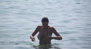 Още щом стъпи на родно море, тя веднага публикувах в сайта си поредната доза еротика. Полугола,в модерен бански тя се търкаля на брега в прозрачната вода и излага па показ всичко, което може да се види.