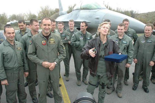 На снимката: Прясно избрания за зам. командир на ВВС ген. Румен Радев с американската посланичка у нас Нанси Макълдауни