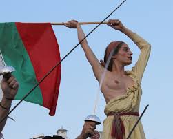 За образа на Свободата бе цанена манекенката, винала през „Визаж“ Таня Илиева, която смело разголи несиликоновите си цици и предизвика бурни коментари сред мъжете, даже и радостни и многозначителни подсвирвкания. Таня твърди, че никой не й е плащал и сама се е вдъхновила за ролята си, но и това остана под съмнение. В социалните мрежи както винаги се разделиха на две. Половната викаха – Браво, много смела и оригинална идея. Другата половина обаче припомни, че в странта има закони и те трябва да де спазват. Нали това е мотото на всички протести? По закон, ако се съблечеш на публично място, те чака глоба до 1000 лева за хулиганство. Полицията обаче се въздържа да глоби почти неизвестната манекенка и се направи, че не вижда голотата й. Тоест гледаше, но с типично мъжки поглед. След спорната картина млади девойчета се опитаха да се разсъблекат, но приятели ги дръпнаха да ги посъветват насаме. В мрежата се шегуват, че утре очакват протестът да бъде обогатен с бодра гей дружинка, или направо гей парад, а други ден да минат от партията на нудистите свсем по натура.