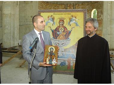 В петък варненци станаха свидетели и на друга необичайна гледка в новостроящия се храм. Те видяха с очите си как вътрешният министър Цветан Цветанов бие 540 килограмовата камбана на църквата, след като лично инспектира строително – монтажните дейности.